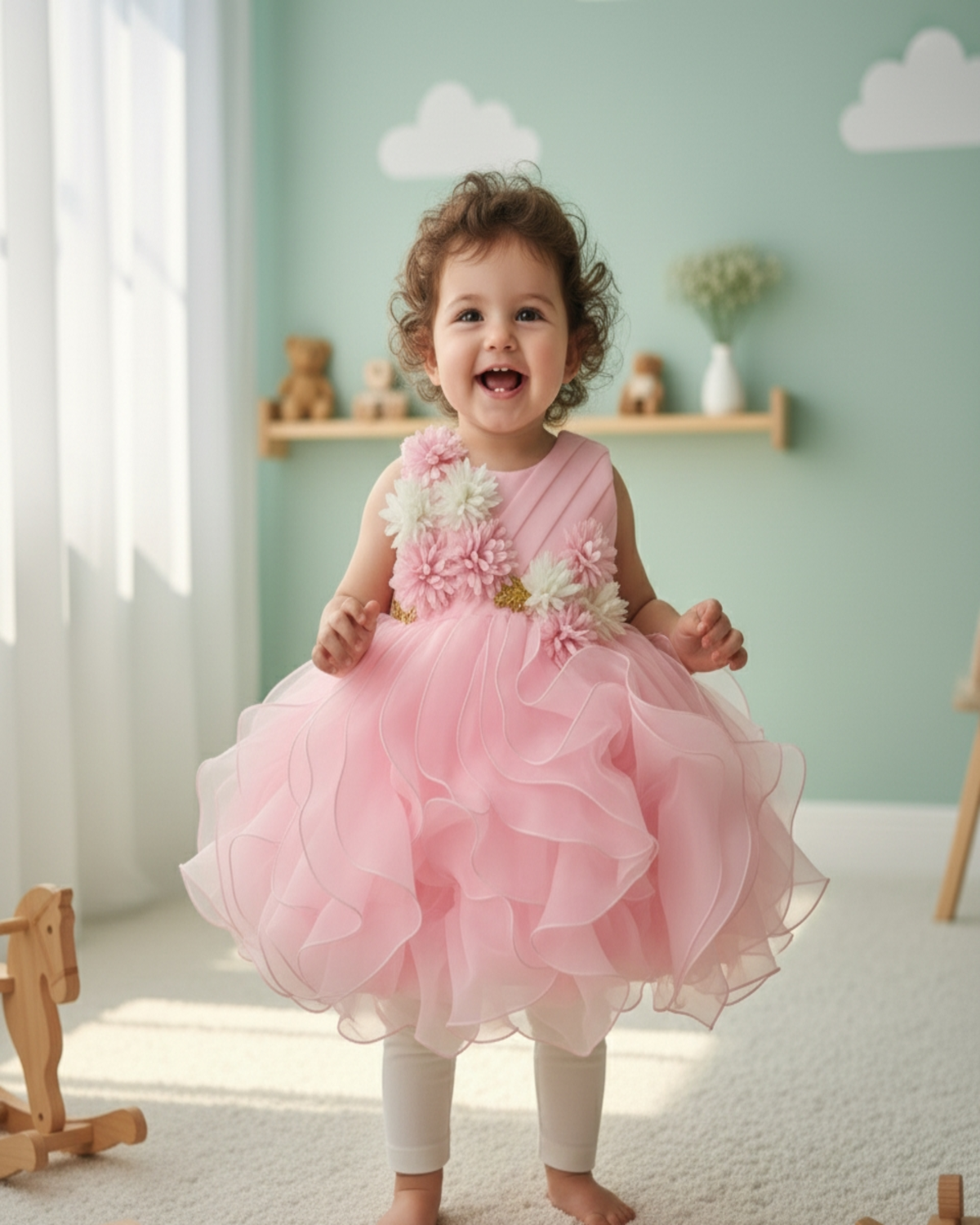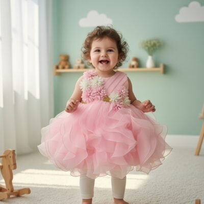 Ruffled Floral Pink Party Dress